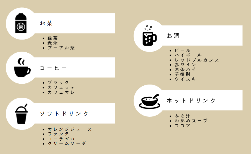 下記に、社員のみなさんの好きな飲み物をまとめました。